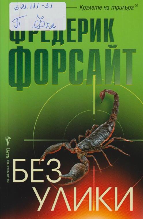 П/821.111-31/Ф72 ФОРСАЙТ, Фредерик Без улики / Фредерик Форсайт ; Прев. Милко Стоименов. - София : Бард, 2015. - 320 с. - (Кралете на трилъра) ISBN 978-954-655-633-2 Сист. N: 105031 |