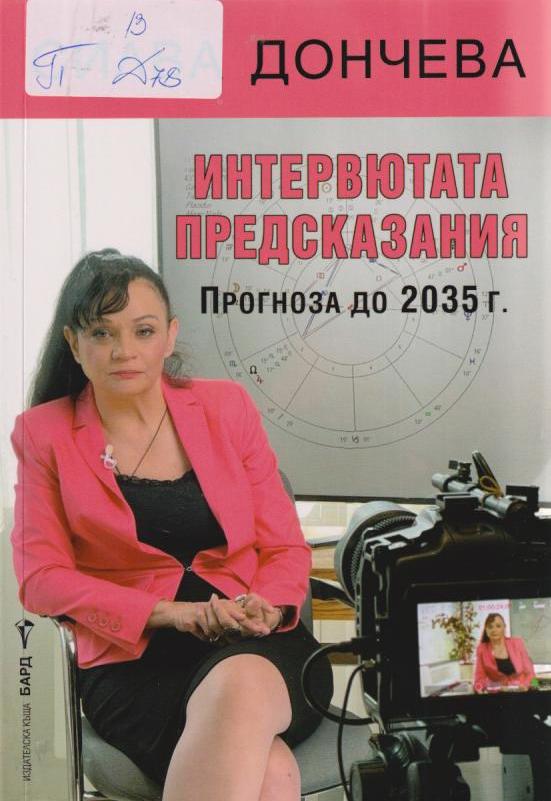 П/13/Д78 ДОНЧЕВА, Силва Интервютата предсказания / Силва Дончева. - София : Бард, 2025. - 560 с. ; 21 см ISBN 978-619-03-0346-6 Сист. N: 105042 |